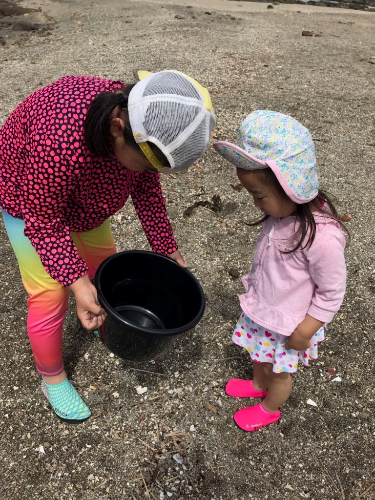実家からほど近い海で磯遊びを楽しみました。