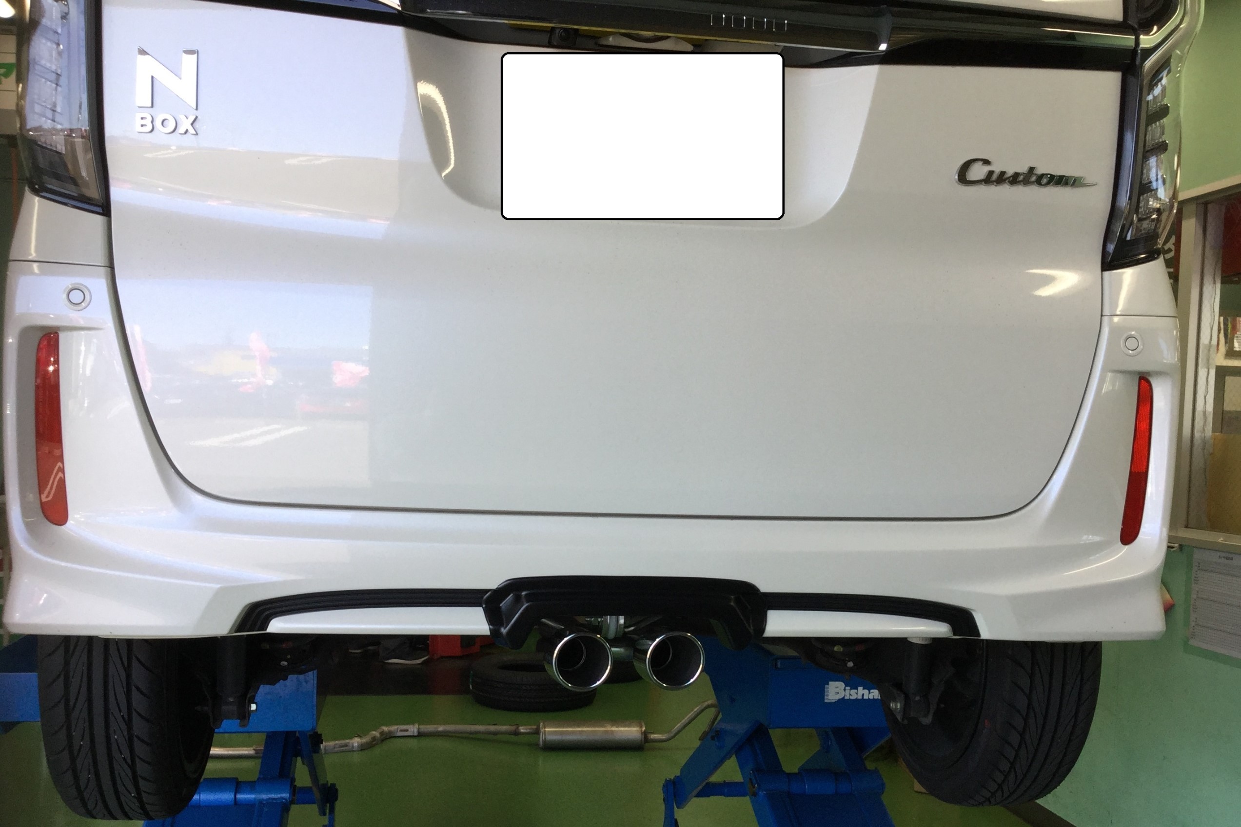 マフラー交換(N-BOXカスタム) ポスト 2019年5月13日 こんにちは~タイヤ館ではマフラー交換もできますよ~!!! 今回はN-BOXに『無限18000-XNH-K1SO』をお取付しました。 ↓これから作業です!ノーマルはマフラーが見えないんですね(;・∀・) ↓リアバンパーを一部カットします!付属ガーニッシュがあるのでかっこよく決まる!!! ↓ 真後ろからの画像 ↓ オールステンレス製もちろん保安基準適合の交換用マフラー事前認証制度認定品です! 担当:MAMAサン