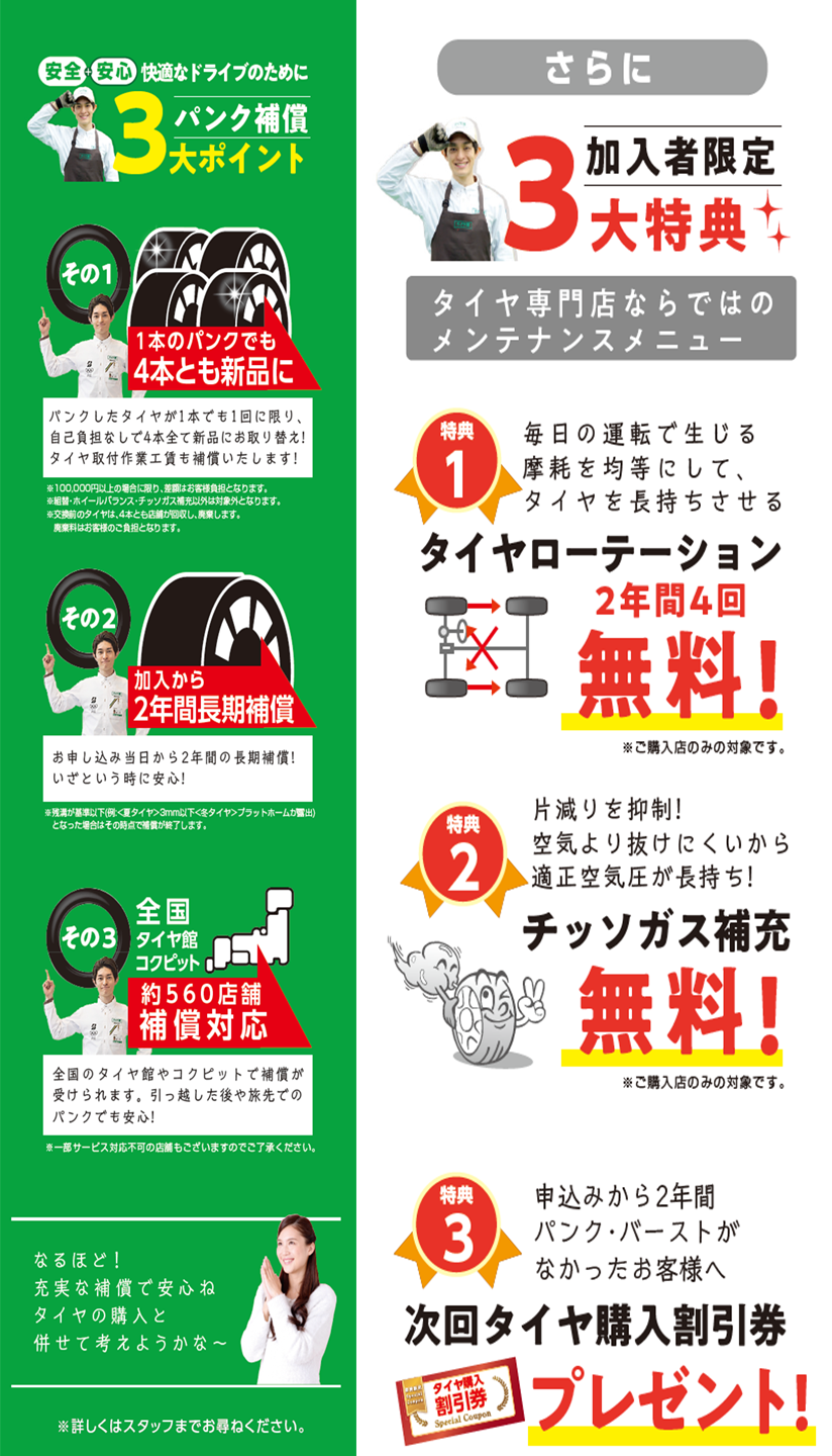 ※当店にてタイヤ4本ご購入がご加入の条件となります。