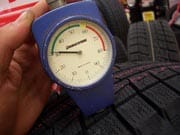 タイヤのトレッド部分に硬度計を押し当ててやると針が動きます。