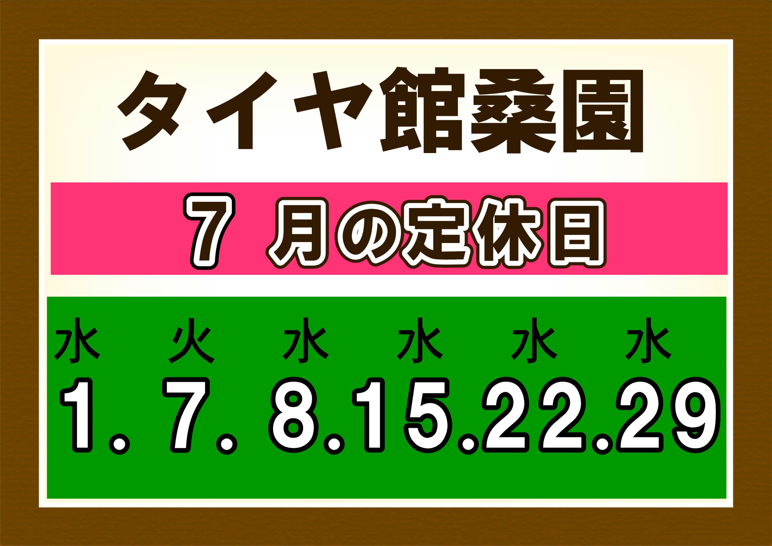 7月の定休日のお知らせです!!