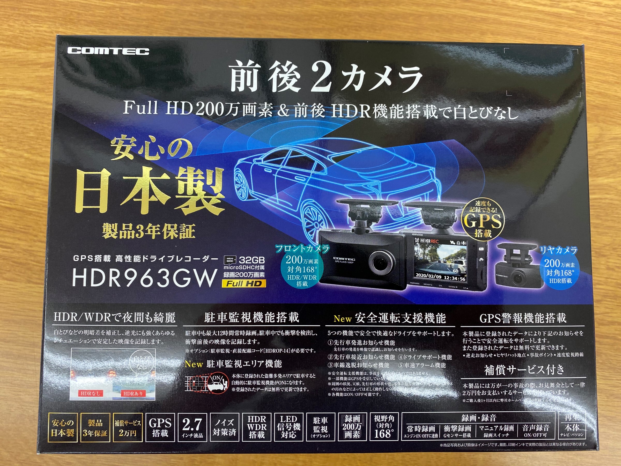 安心の日本製、前後をしっかり録画できる2カメラタイプ!