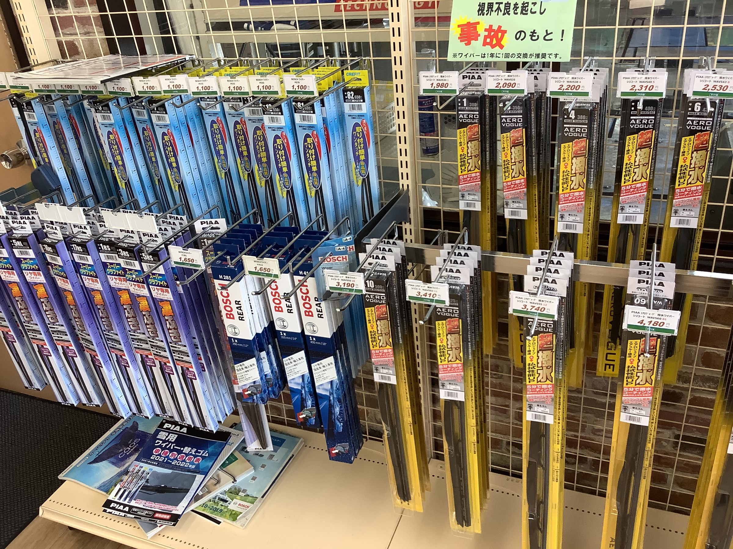 普通のワイパーより水弾きがよくなる「撥水ワイパー」もご用意してますよ