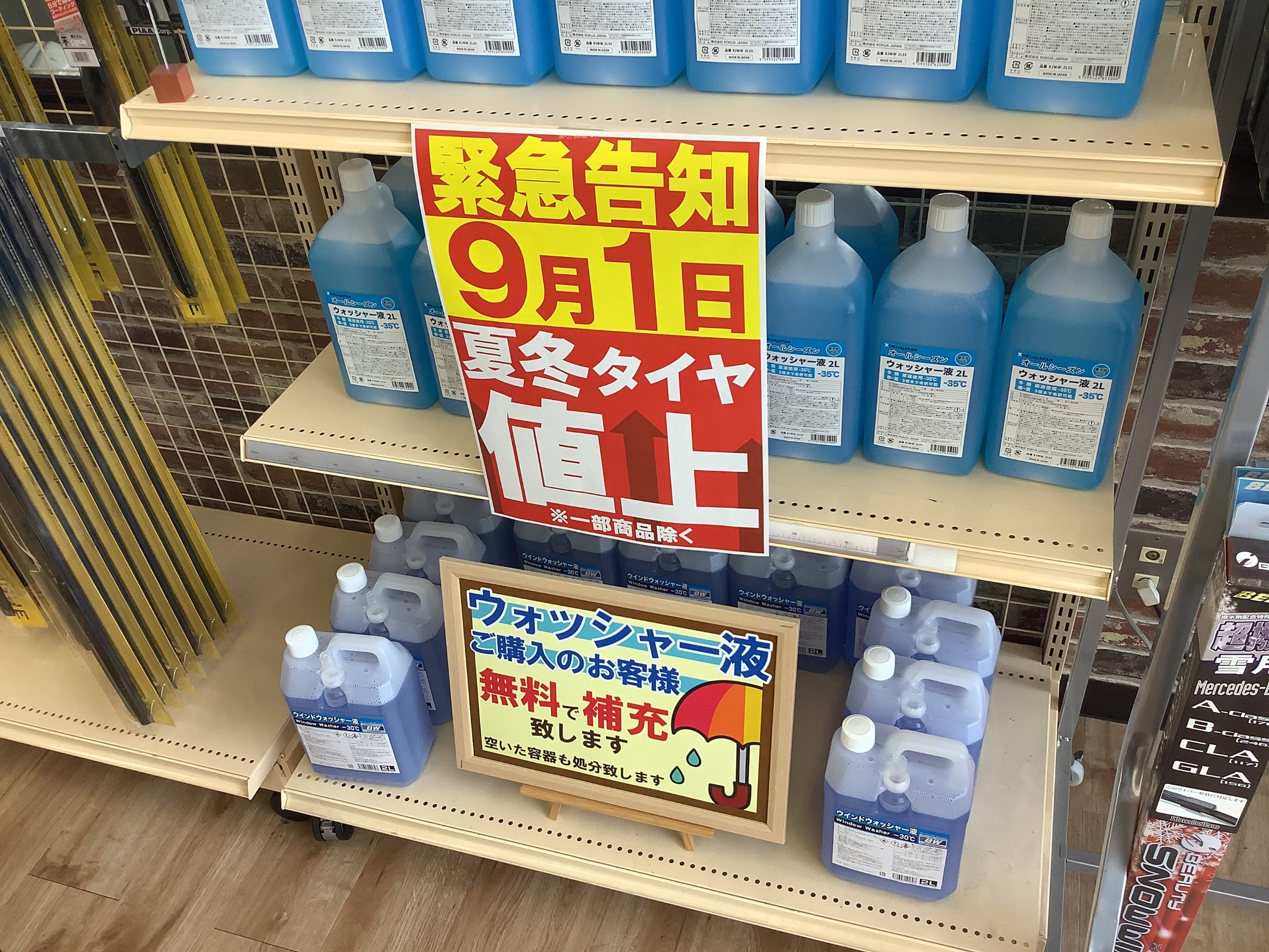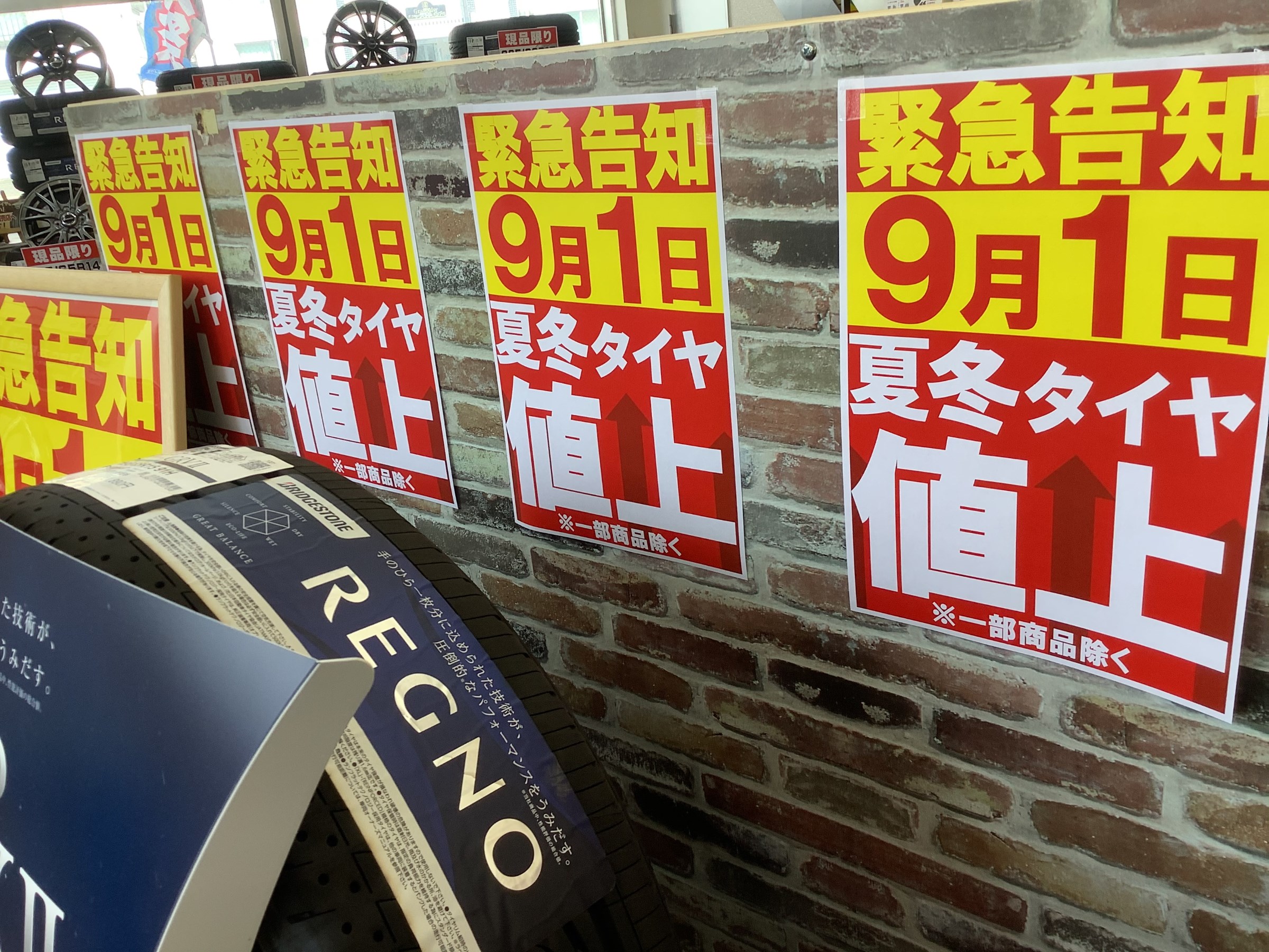 来月9月1日からタイヤの値上がりが決定しています