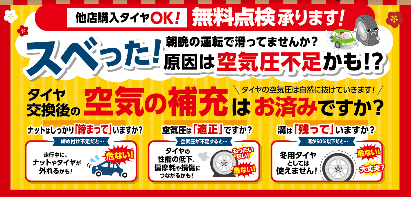 タイヤの点検はいつでも無料です!