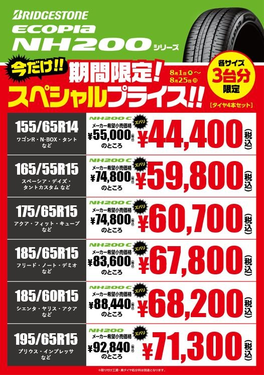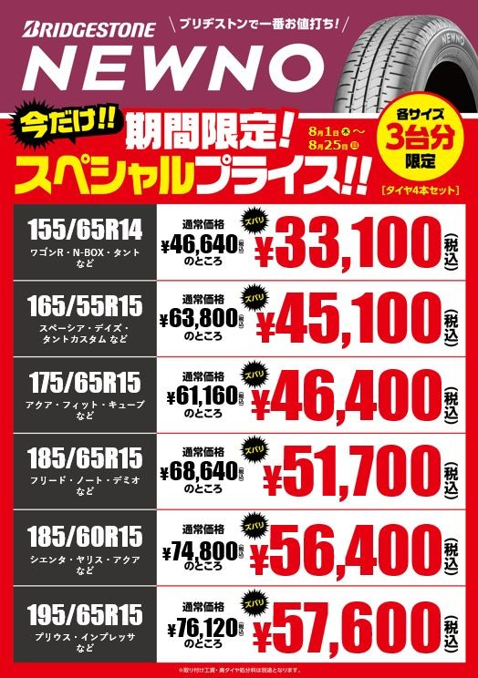 【夏タイヤ】今だけ!!期間限定!!スペシャルプライス!!