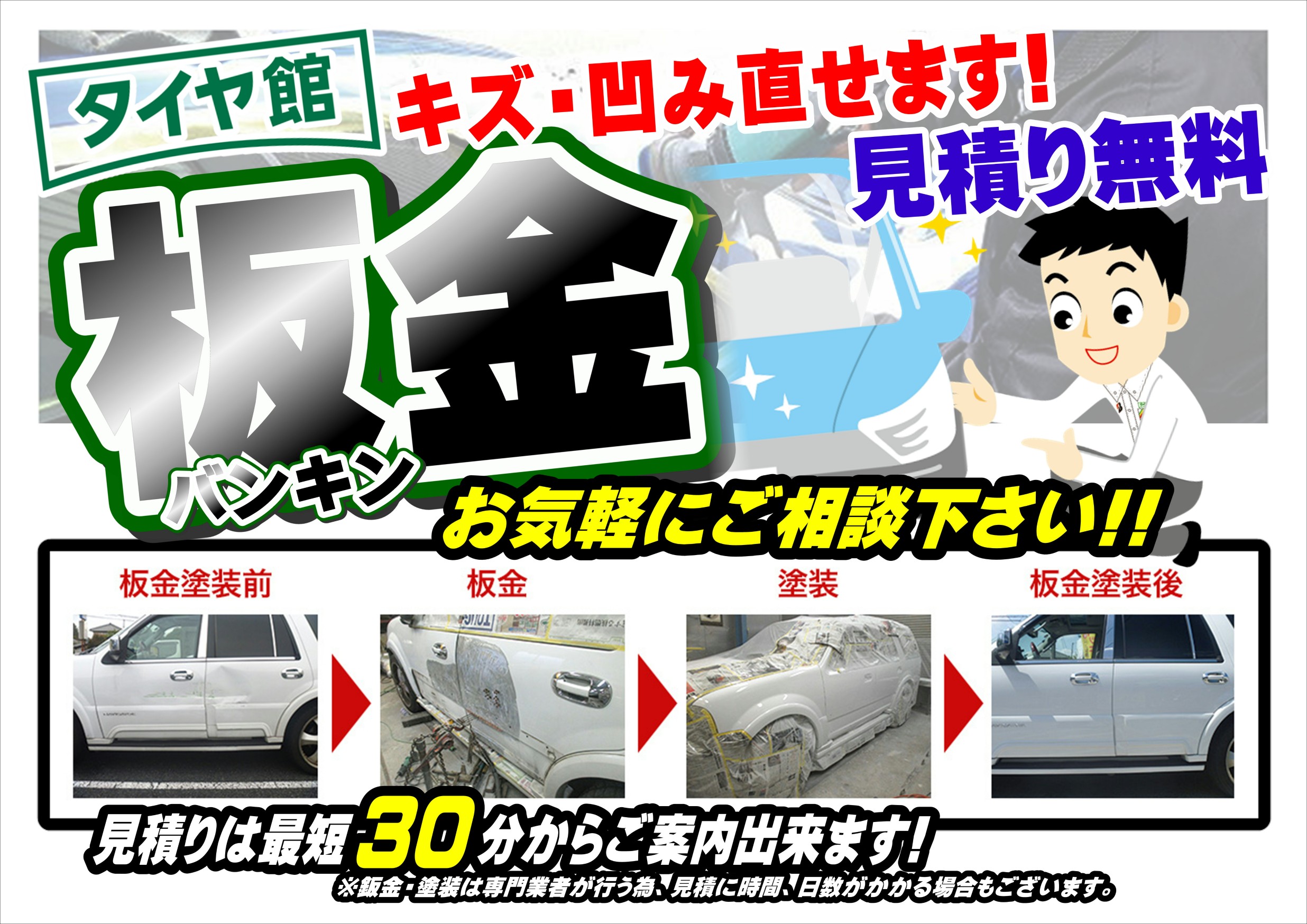 タイヤ館では板金やボディーコーティングも受付中!!!