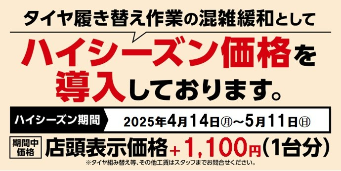 【タイヤ交換】ハイシーズン価格を導入しております!
