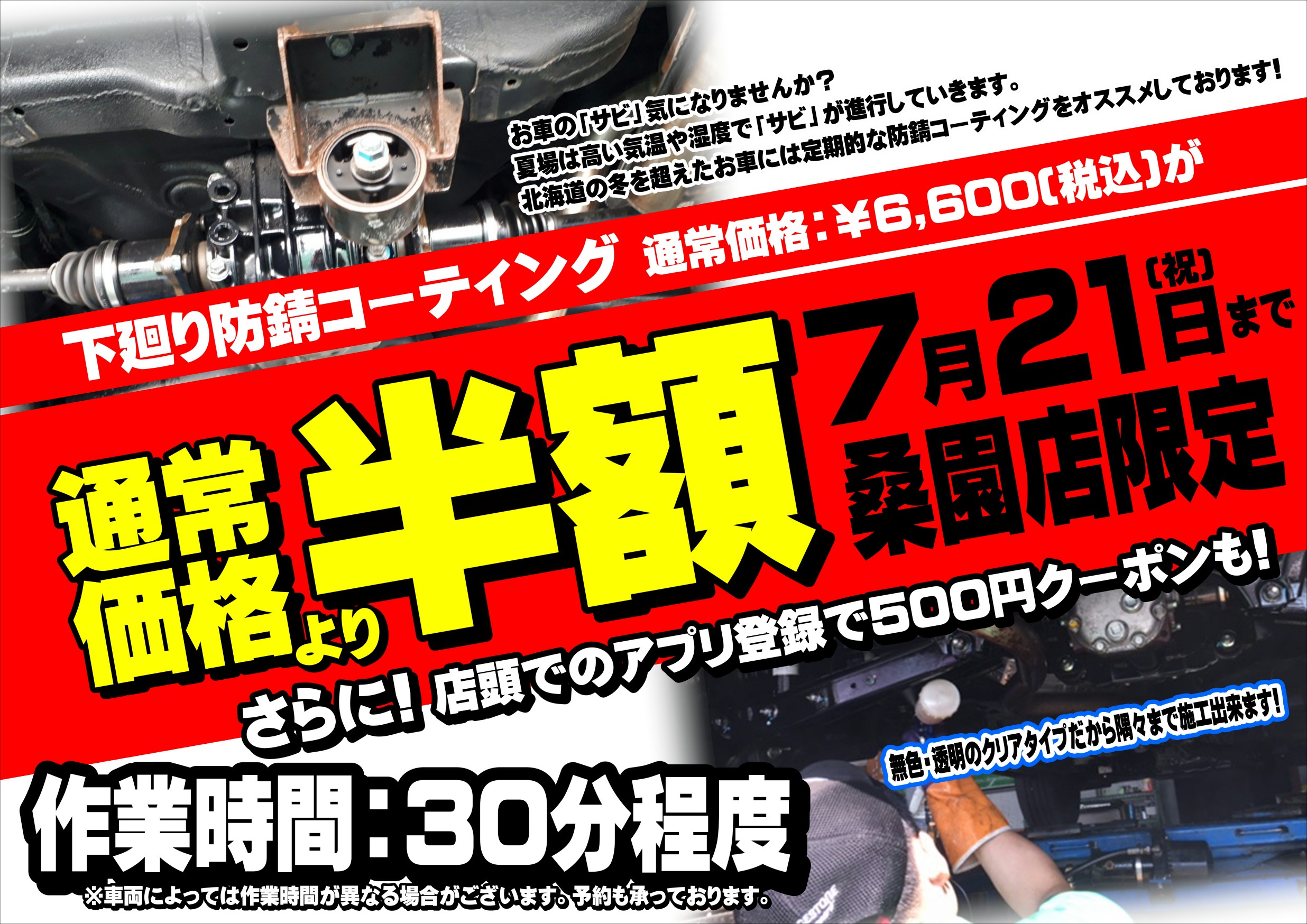 通常:¥6,600(税込) 下廻り+マフラー含む施工が