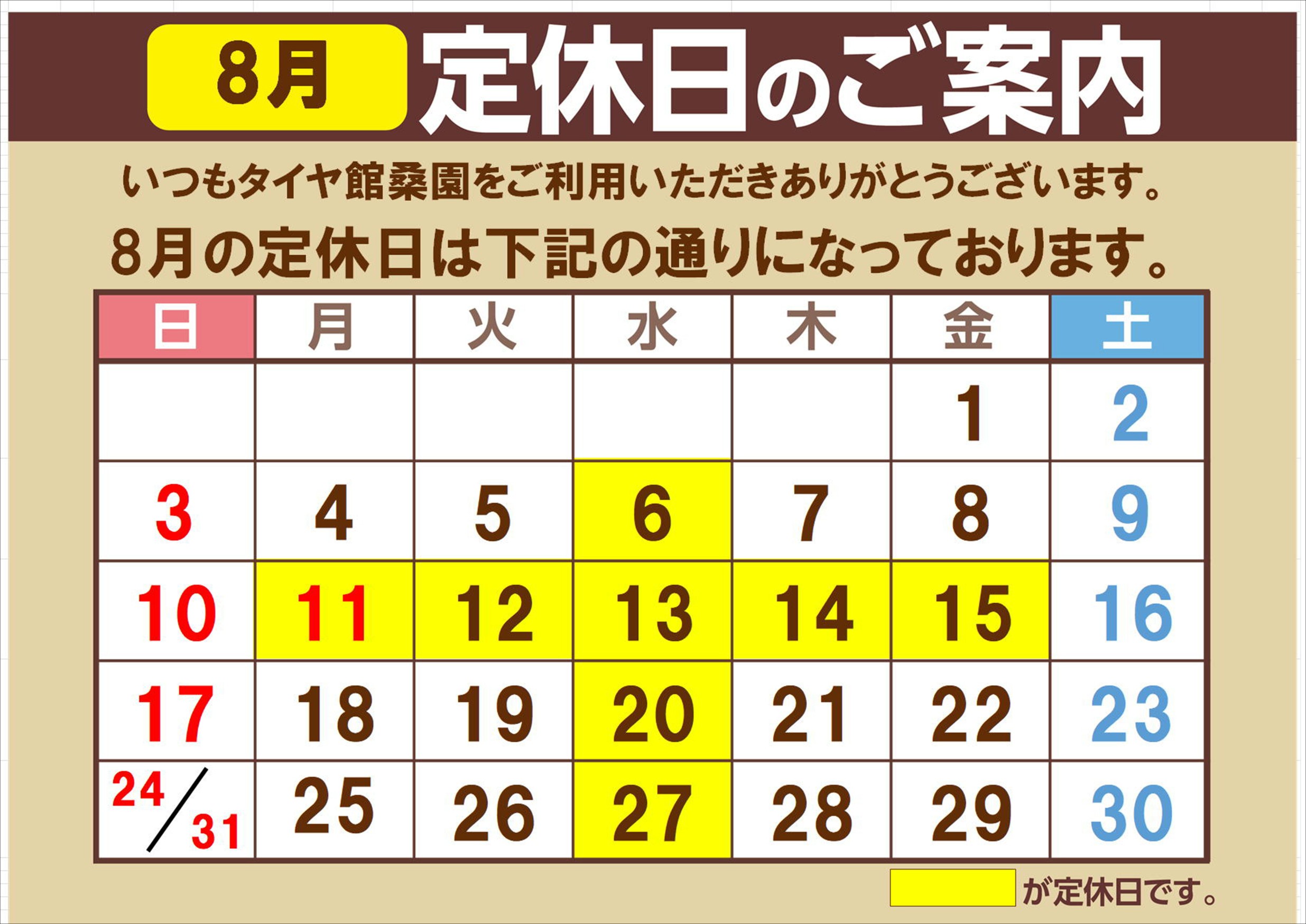 8/10(日)・8/16(土)は通常営業となります
