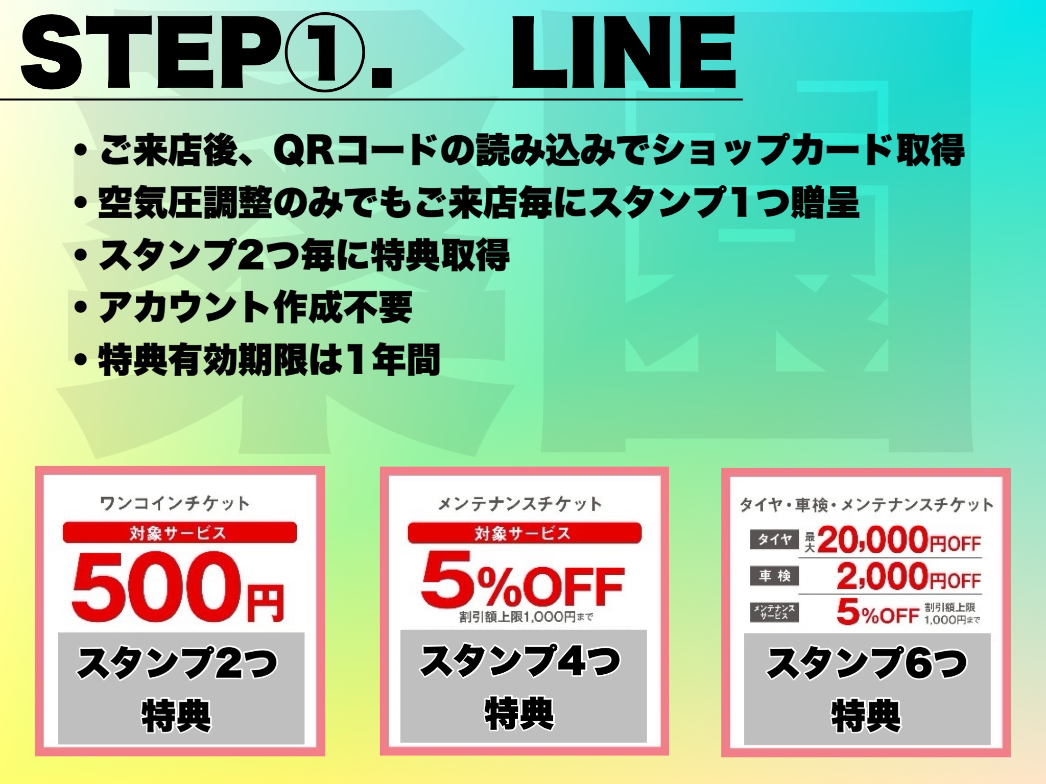 タイヤ館ではアプリやLINE、アンケートなどなど