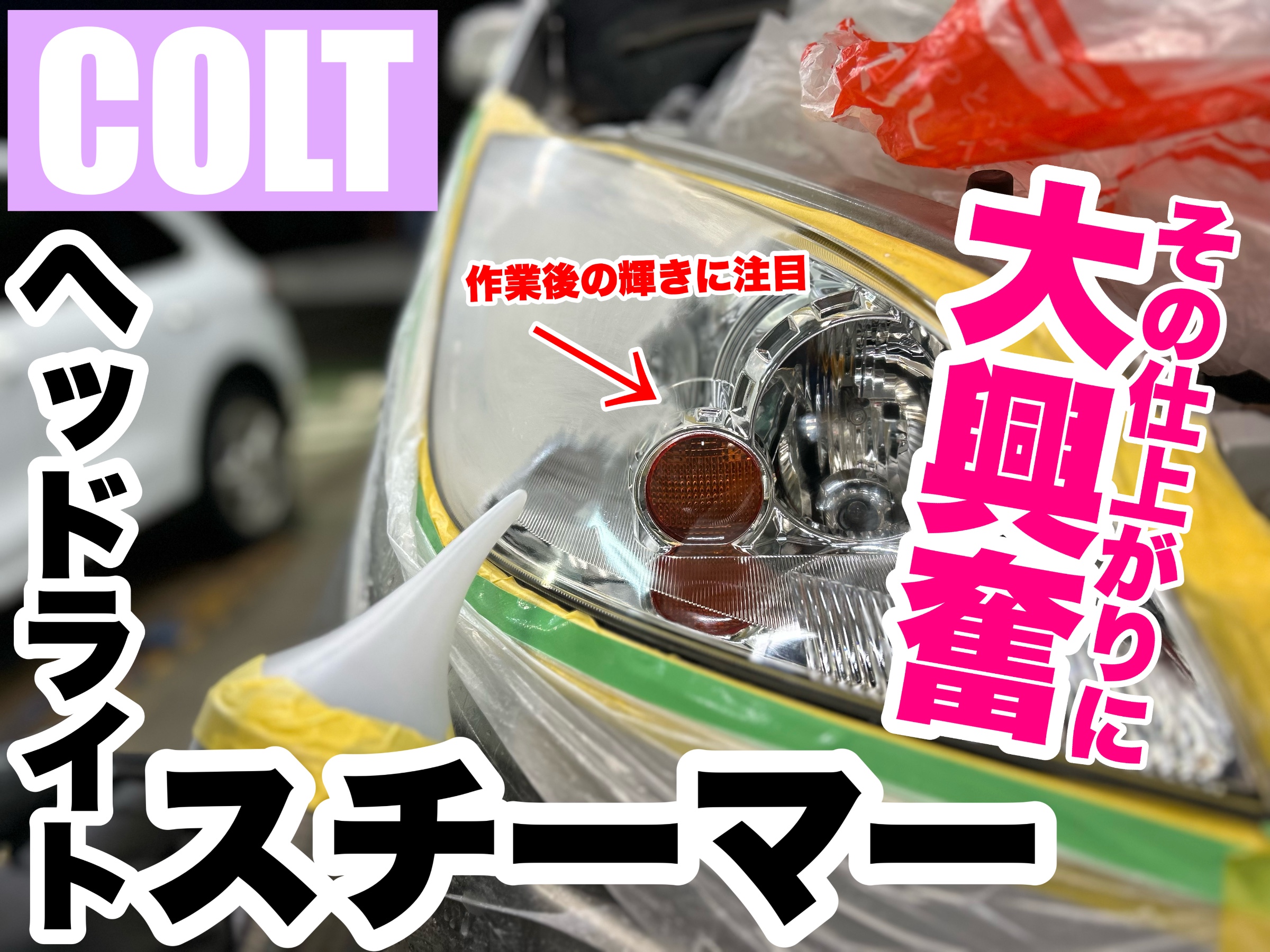 三菱コルトの黄ばみ解消!ヘッドライトスチーマーで輝き復活