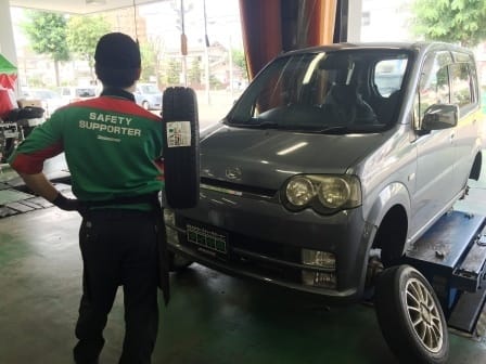 朝一はムーヴの新品タイヤ交換からスタートです。