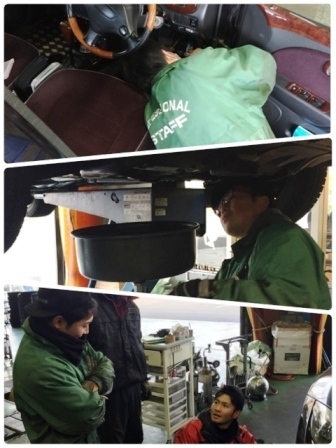 オイル交換をする佐藤スタッフ