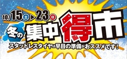 集中得市も残り4日!! ポスト 2016年10月19日 雪虫がすごいですね。作業中も顔に当たってきます・・・雪予報も出てますしね・・・いよいよ冬も近いですね。10月も後半に入りますが当店のお買得イベント『集中得市』は10/23㈰までとなりますので是非この機会にご来店ください。皆様のご来店お待ちしております。 担当:えんや