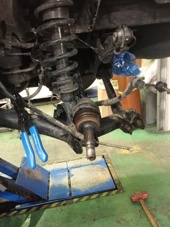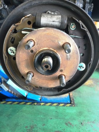 先日、タイヤ交換していたお車の後ろのタイヤがグラグラ・・・