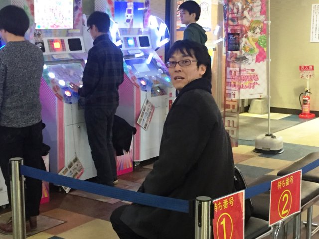 ゲームセンターでゲームの順番待ちをする店長・・・