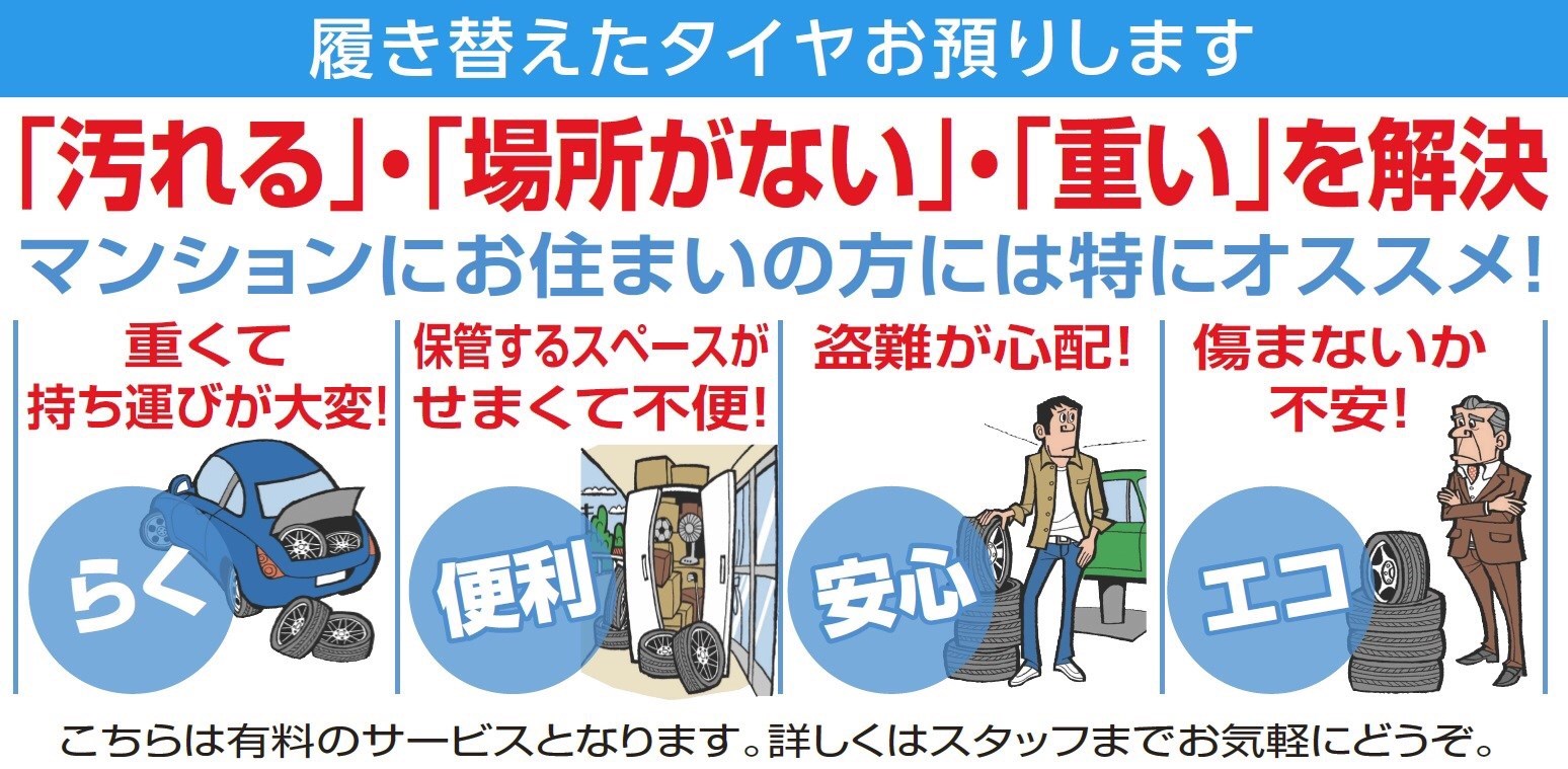 そしてお困りの方も多いかもしれません!!当店ではタイヤお預かりサービスも受付しております!