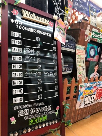 もちろん無料!本日もタイヤ交換後の点検のご予約でご来店いただきました。