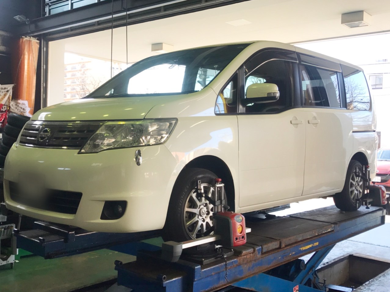 こちらはセレナ様のアライメント中の様子です!!