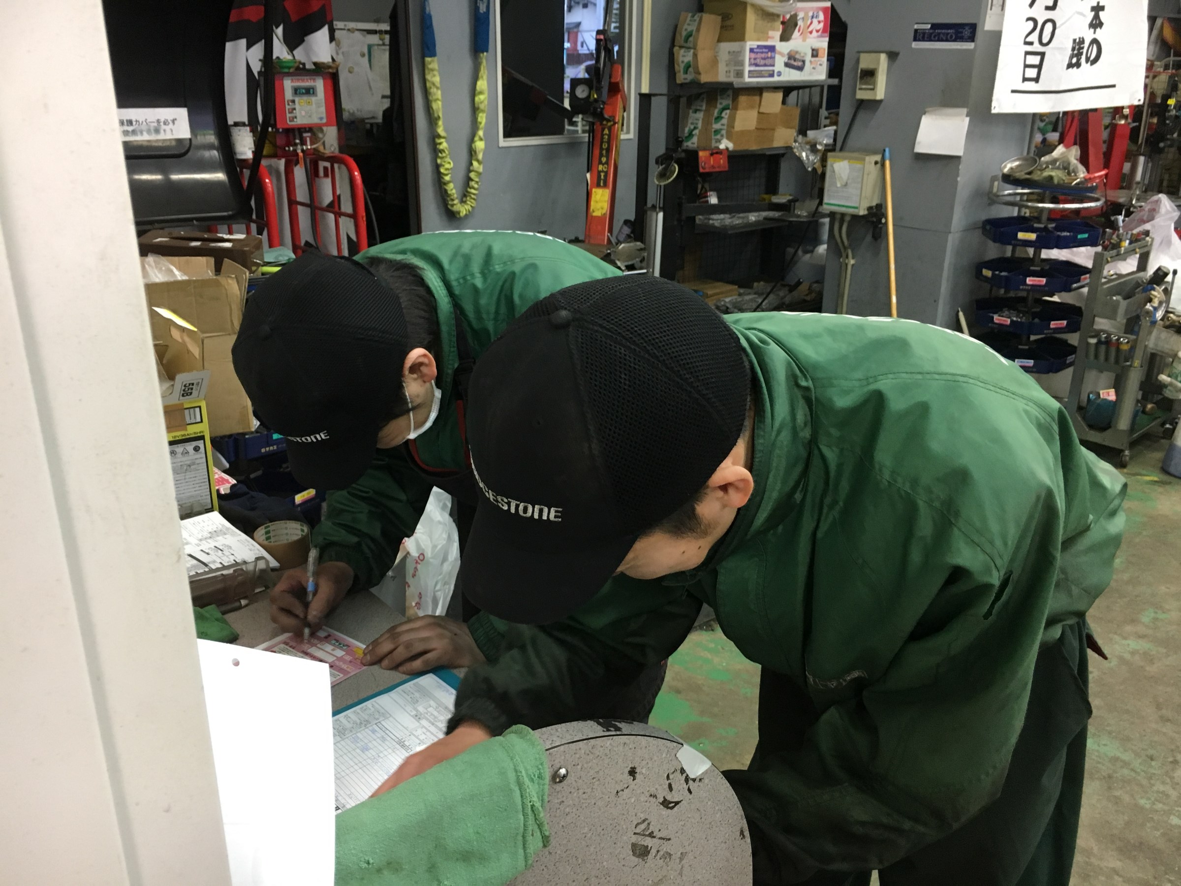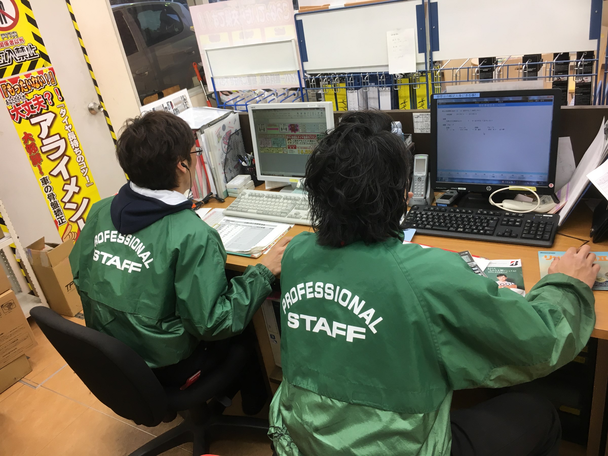 仲良く隣同士で仕事中の細口店長と塩谷スタッフ!!