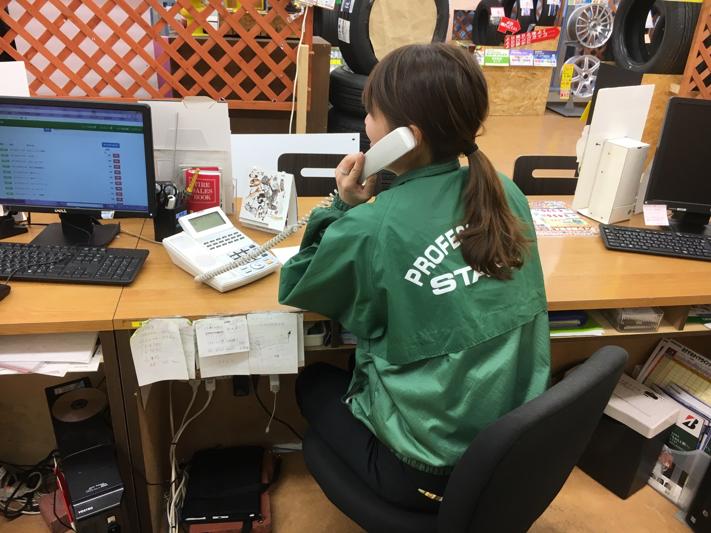 笑顔で電話対応中!!とっても明るいアルバイトスタッフのあいこさん♥