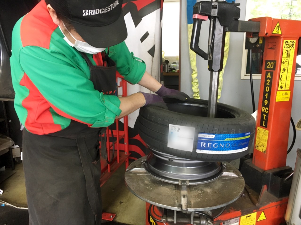 写真はタイヤ組み替え中の立崎スタッフです♪