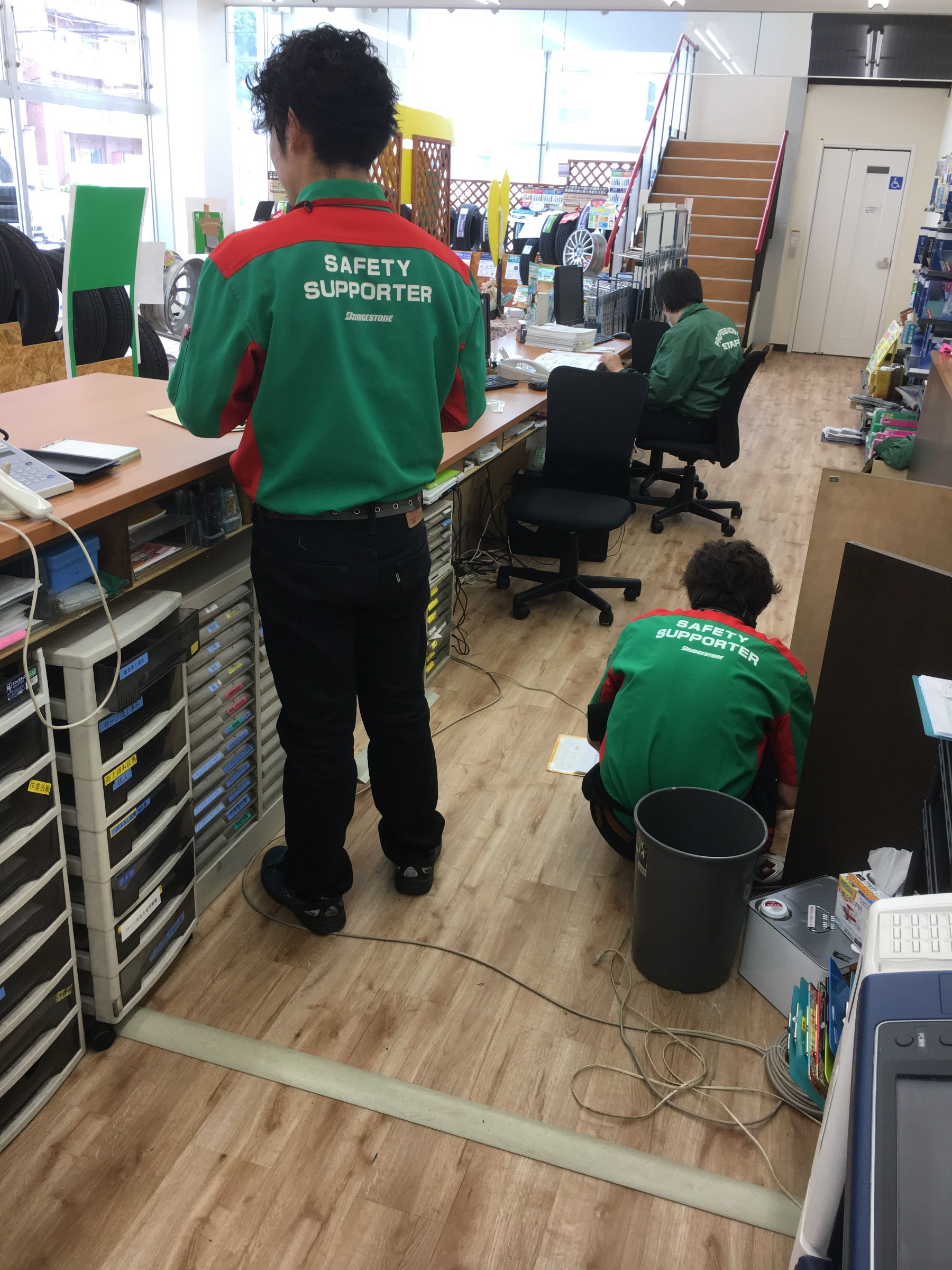 手前から立っているのが塩谷スタッフ、しゃがんでいるのが細口店長