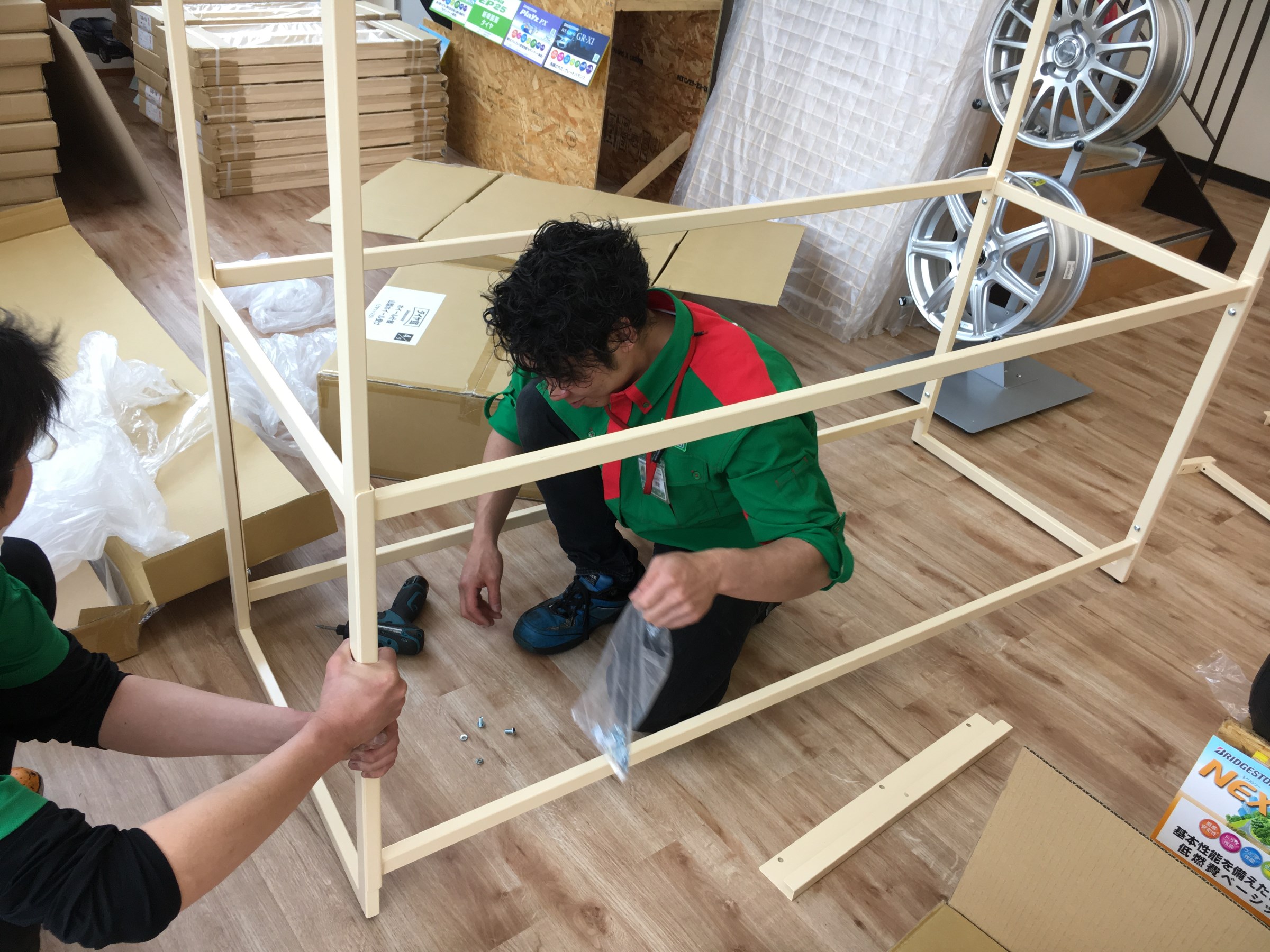 ひたすらねじで止めたりハンマーで叩いたり組み立てていました、、、