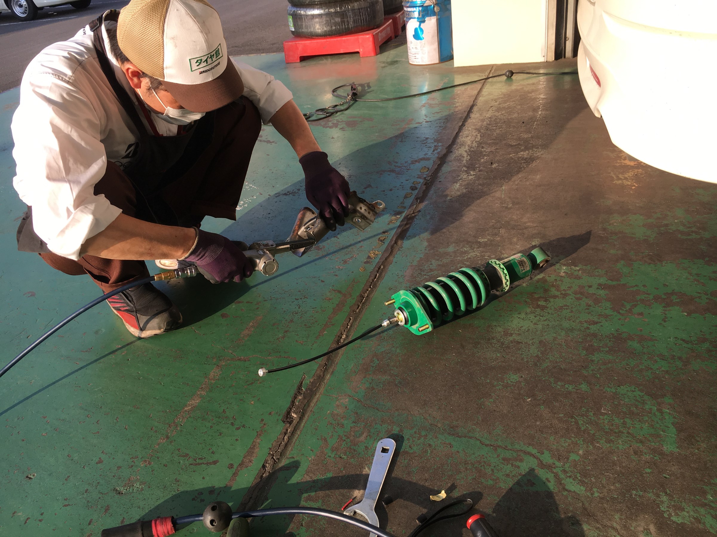 車高調にケーブルを付け、それを出すために研磨したり加工を