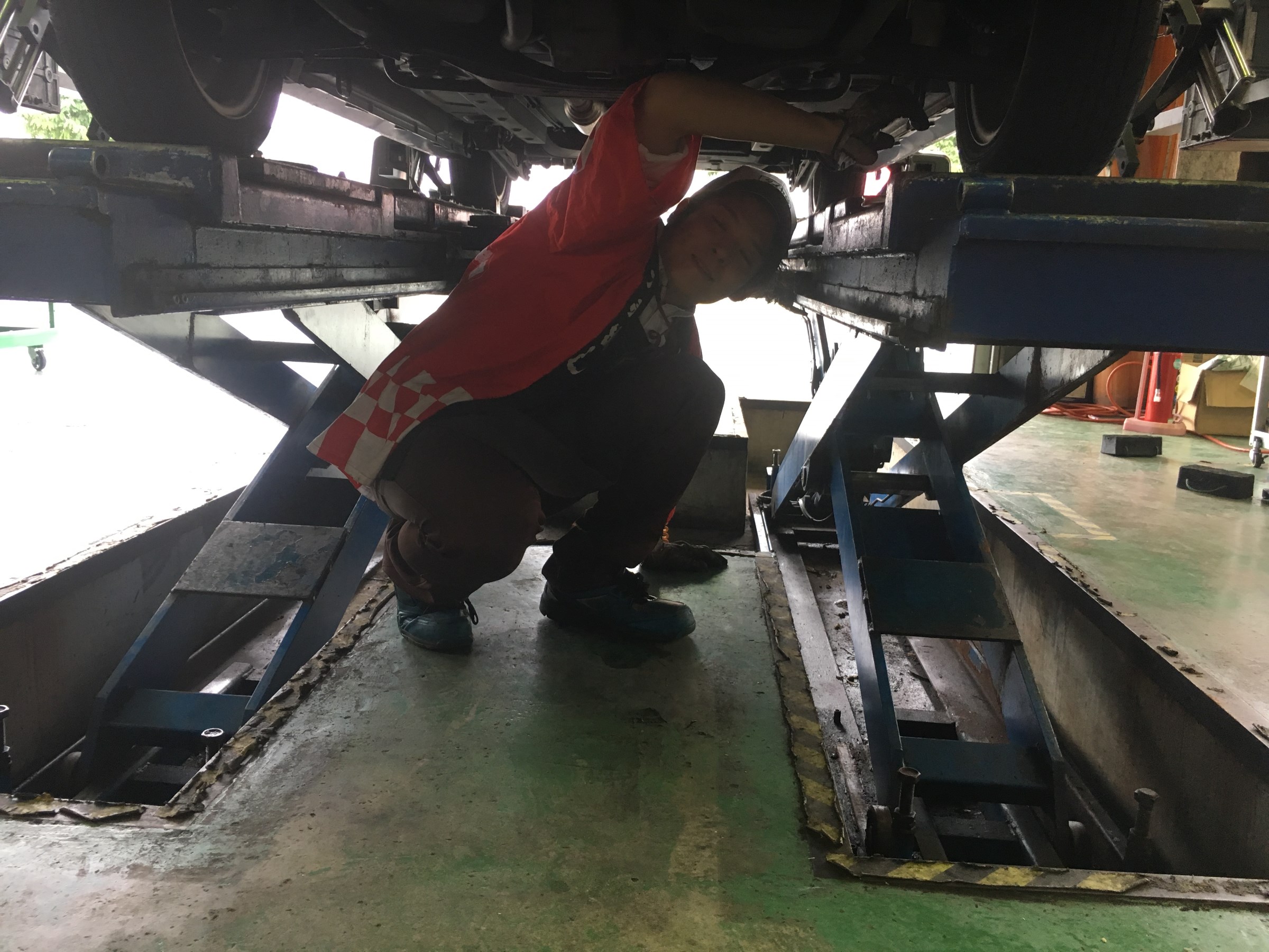 逆光ですがアライメント作業中の塩谷スタッフ!