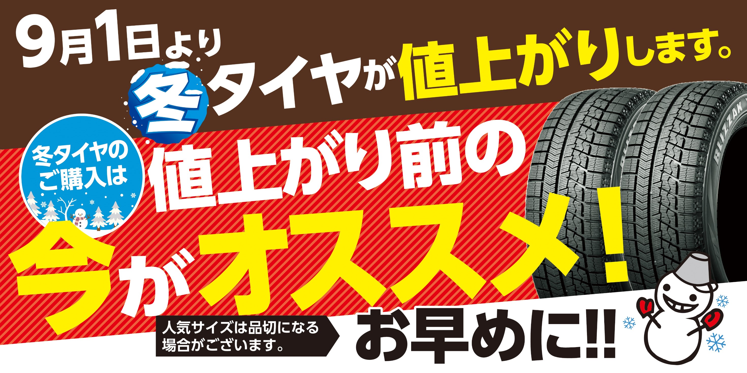 9月1日からの冬タイヤ値上がり&新商品発売まで残すところ