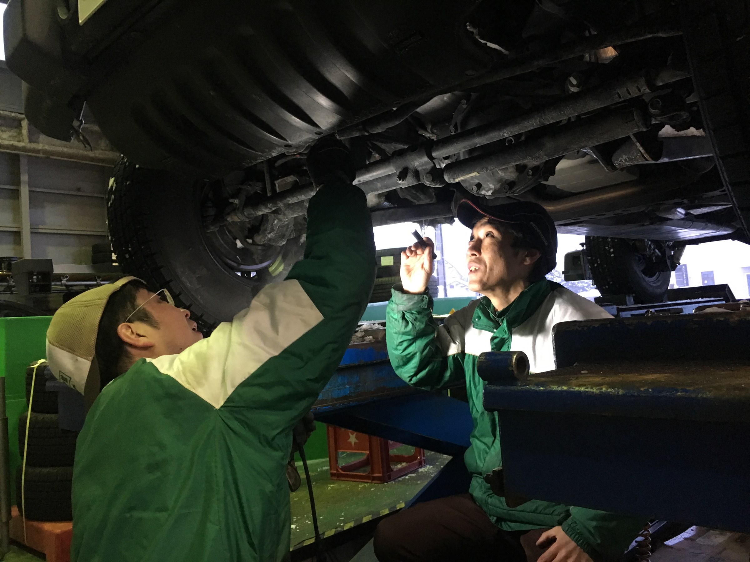 ラングラー様のアライメント調整をさせて頂いているときの写真です✩