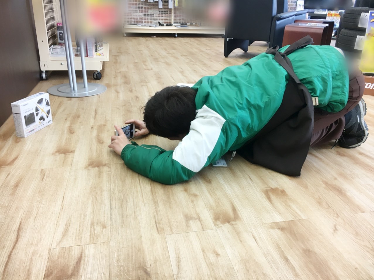 あの展示を作る為にこんな体勢で商品を撮影していました!笑