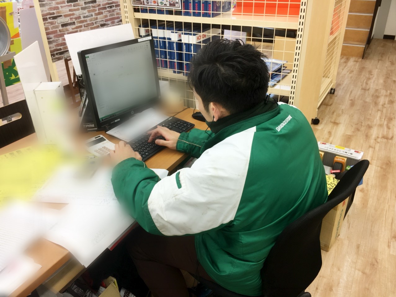 パソコンとにらめっこしているのは塩谷スタッフと細口店長です!