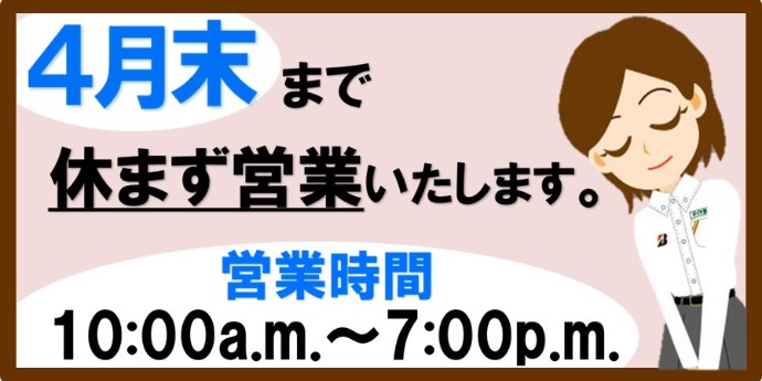 4月末まで定休日なしで営業いたします!!