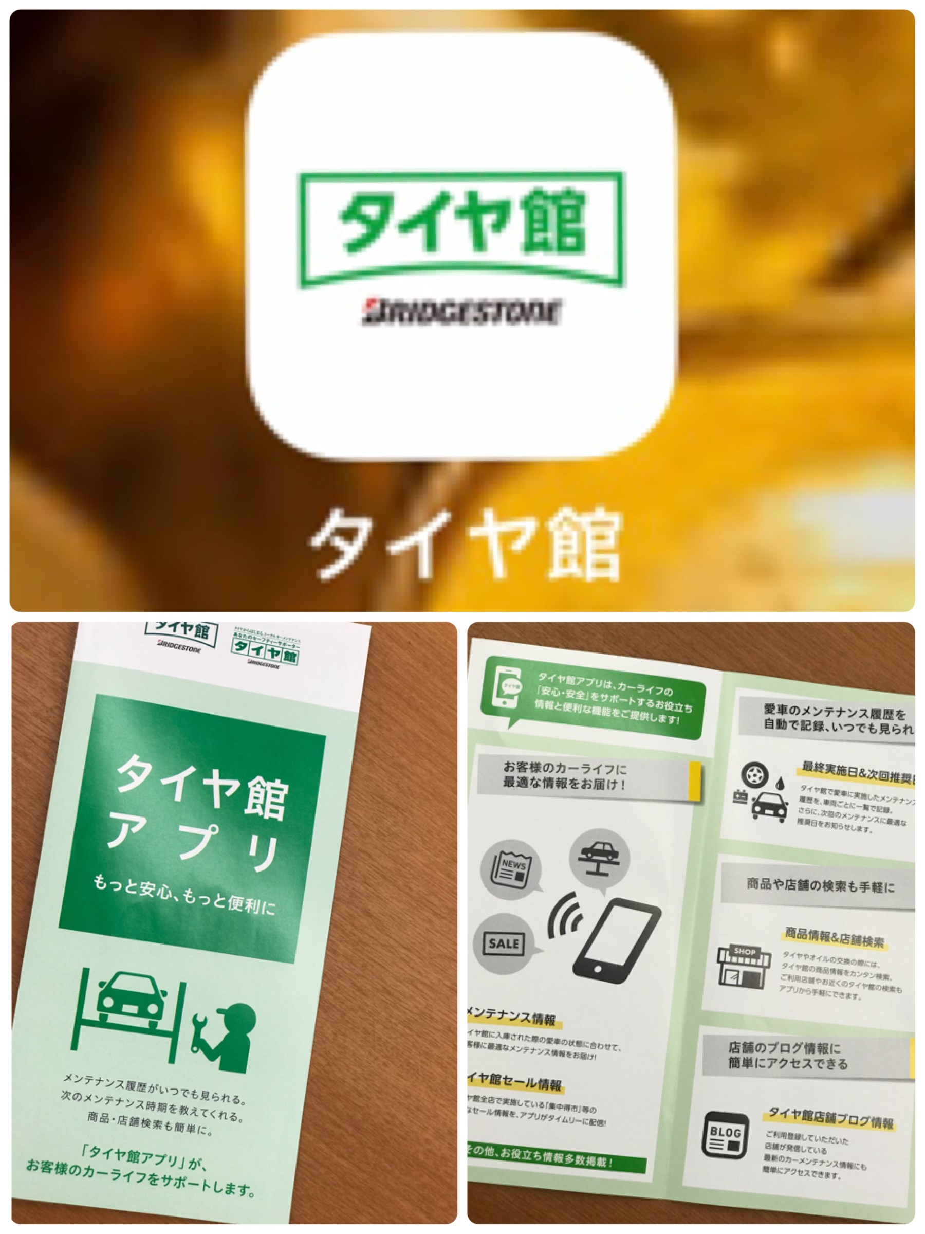 こちらのアプリ、タイヤ館のお買い得情報や割引クーポンの発行のなど