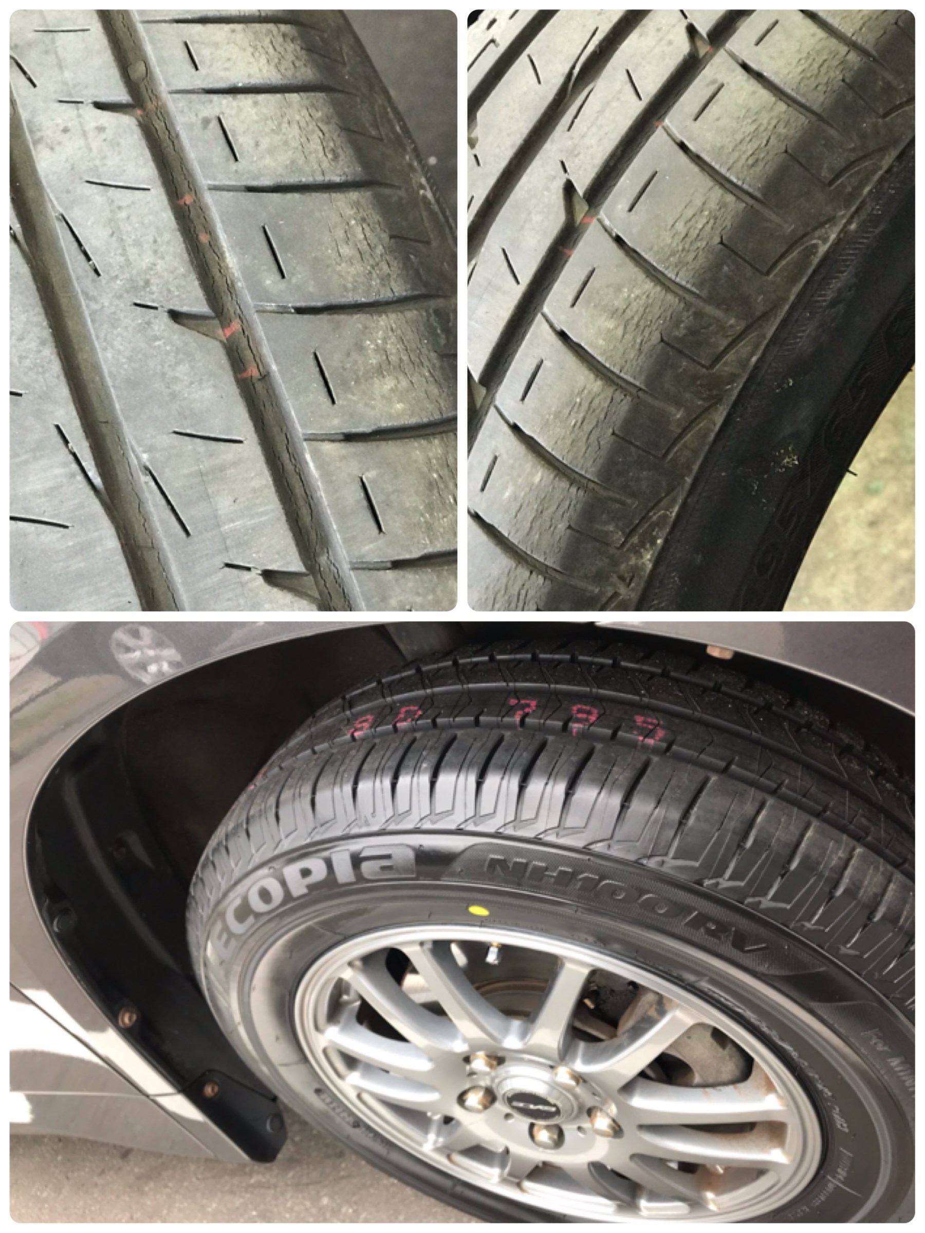 ご覧の通りタイヤの路面設置面までヒビ割れが見られます。
