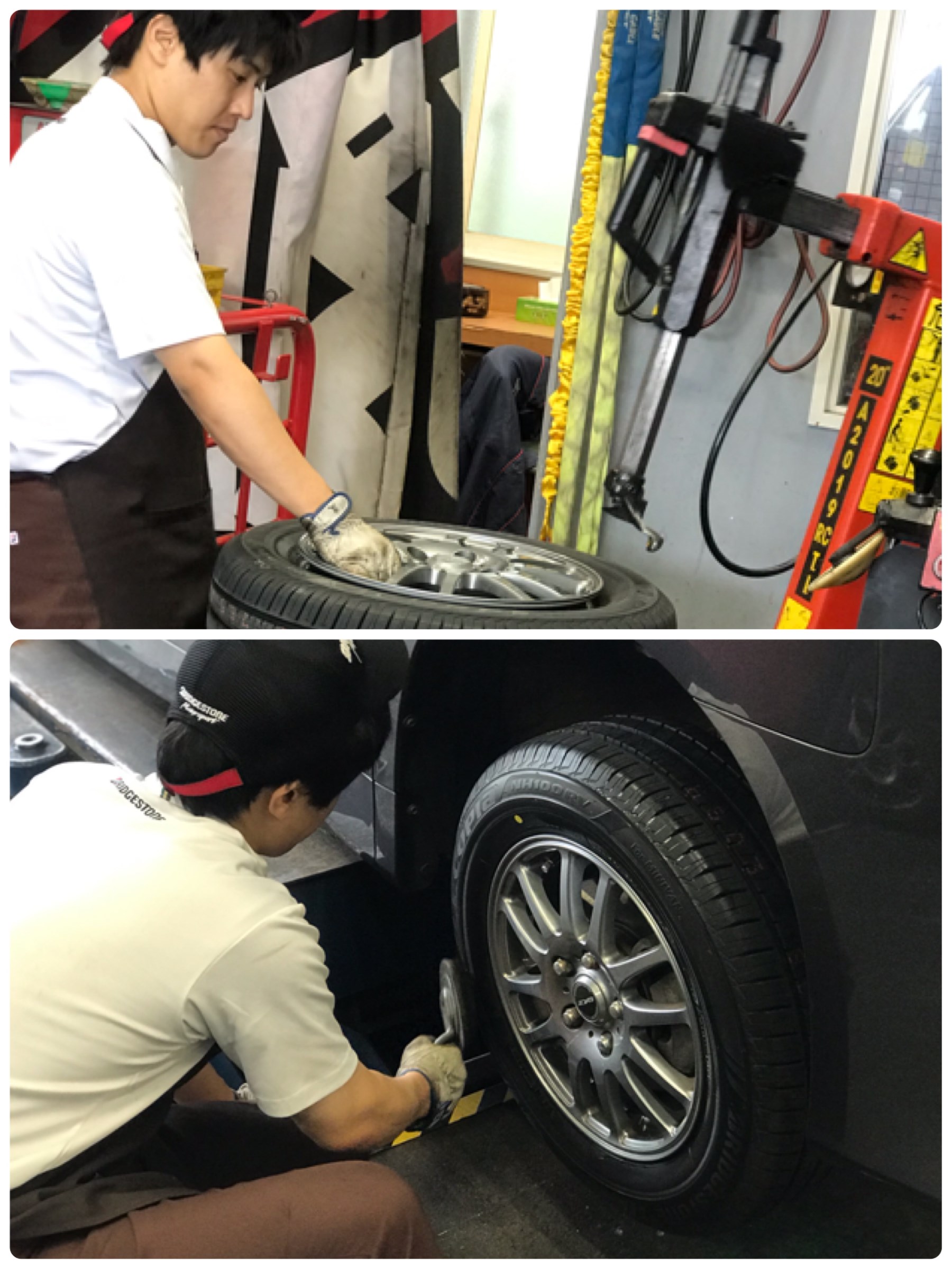 一所懸命、タイヤ交換をしている久井主任。