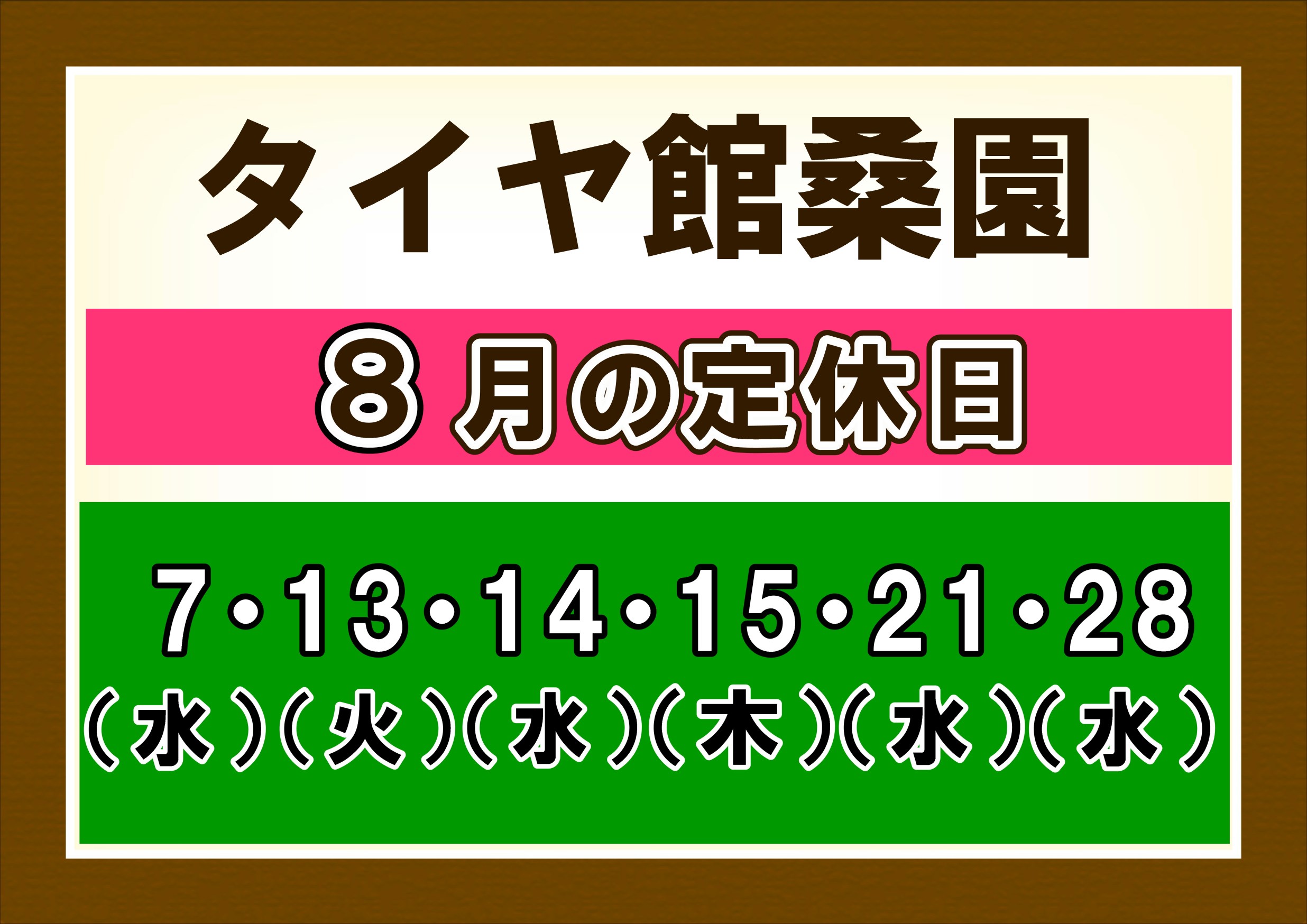タイヤ館桑園 8月休業日のお知らせ