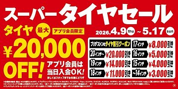 開催期間:2026年4月9日~2026年5月17日 >>>タイヤ館桑園店 イベント詳細情報を見てみる タイヤ館桑園店では 「スーパータイヤセール」を開催!! >>>タイヤ館桑園店 イベント詳細情報を見てみる セール期間中のお得なクーポン!! 「タイヤ館/コクピットアプリ」のダウンロードで ★新品タイ...