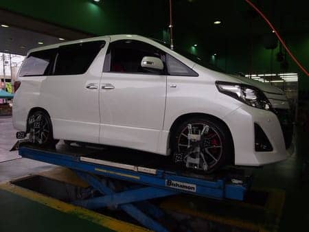 Gz アルファード・アライメント! ポスト 2016年6月4日 みなさんこんにちは!本日はGzアルファードのタイヤ交換・アライメント作業のご案内です。この車はノーマルで19インチのタイヤが着いて専用の足回りでチューニングされています。タイヤはミニバンにピッタリの新商品プレイズPX-RV!アライメントの調整でタイヤも長持ち!安心して快適にお乗り頂けると思います。