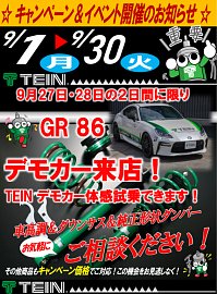 9月27日、28日 テイン足回りイベント開催!GR86デモカーも来店!