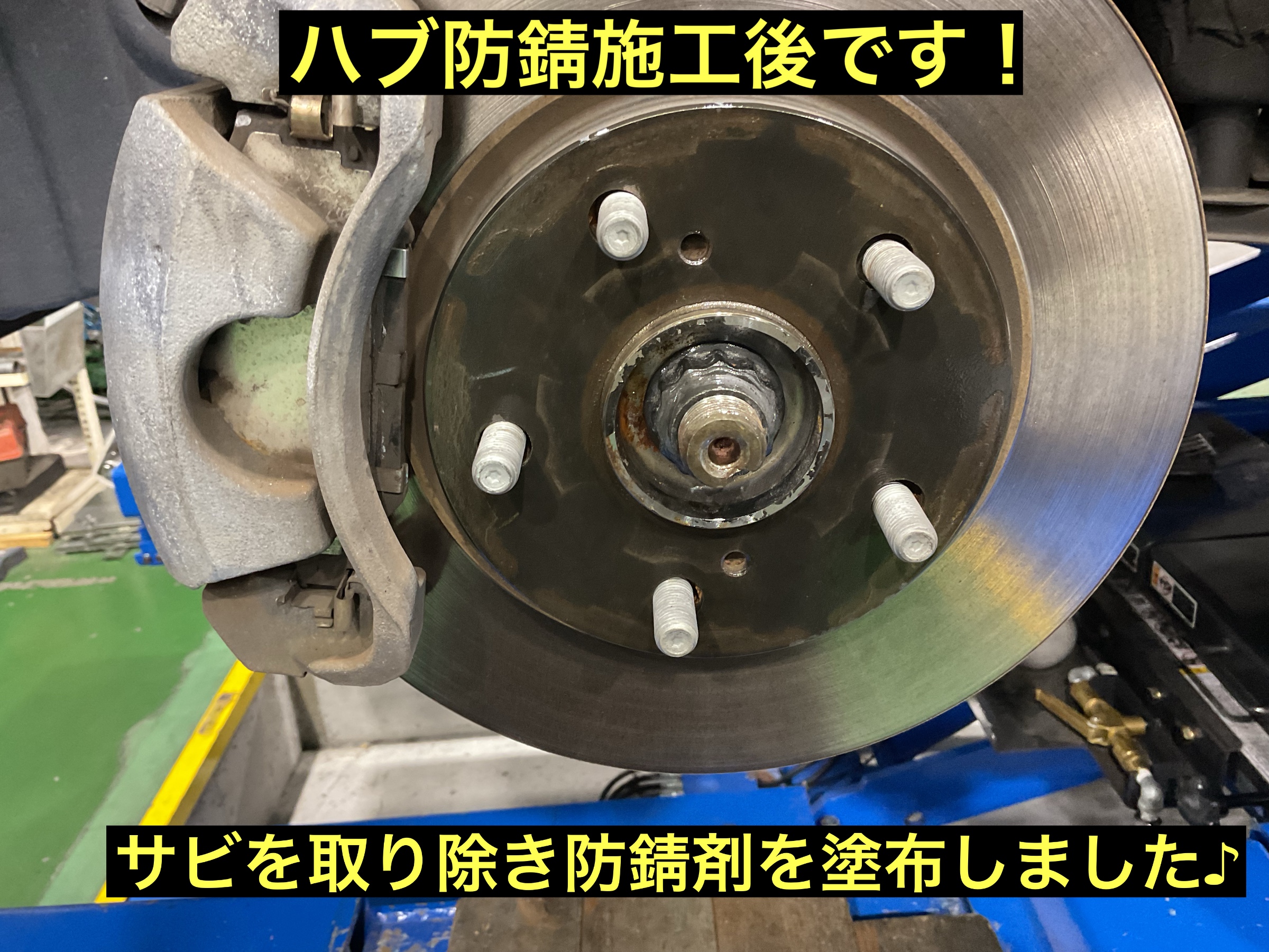 タイヤ館草加インター店のホームページをご覧の皆様 こんにちは♪いつもご覧いただきありがとうございます!!タイヤ館草加インター店のほそいです。 今日はハブ防錆施工の紹介です♪ タイヤを外す際に、写真の◯の部分がサビていて、ホイール裏面の ハブにあたる部分が固着してしまっていて、ナットを...