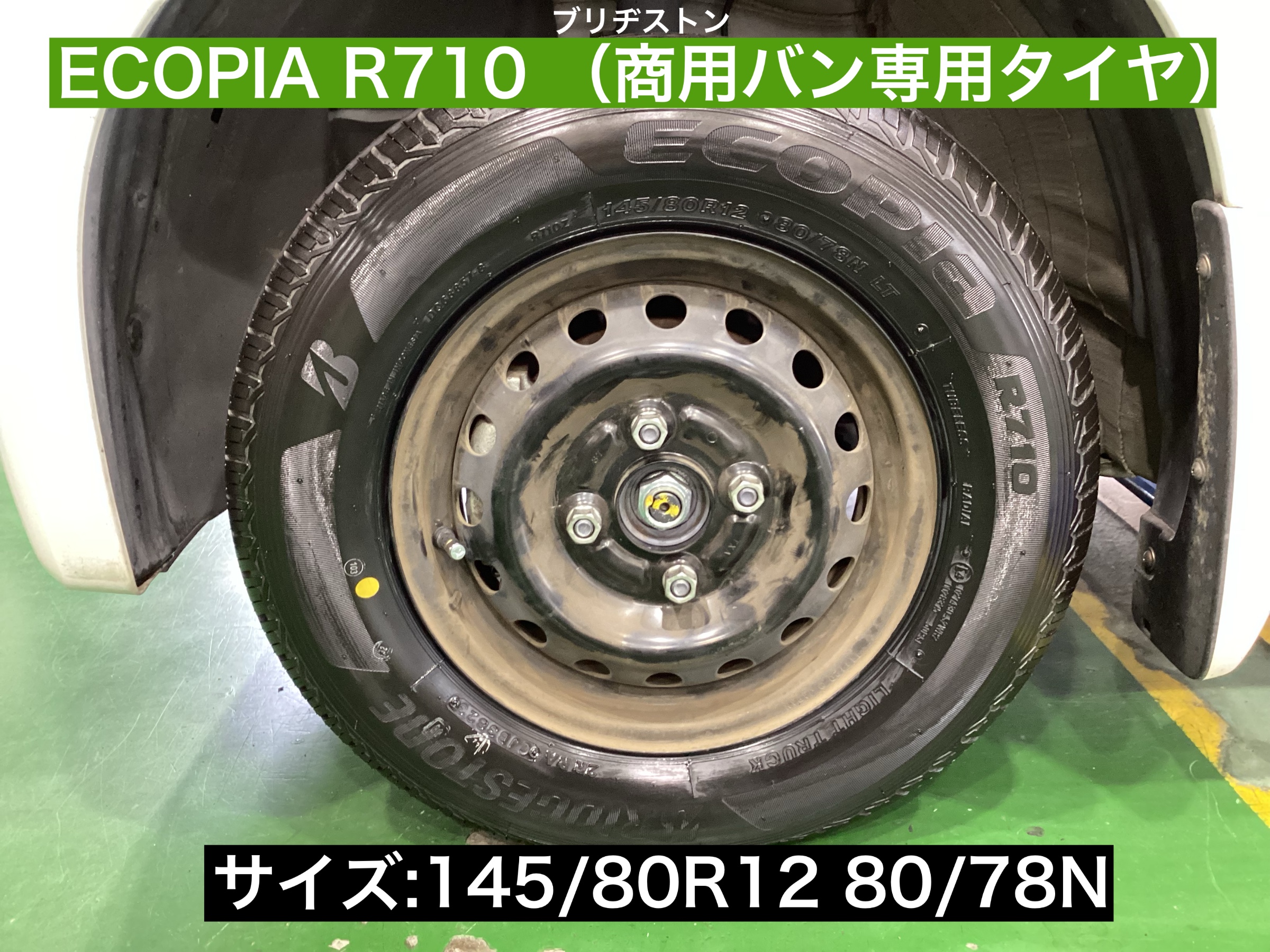タイヤ館草加インター店のホームページをご覧の皆様こんにちは♪いつもご覧いただきありがとうございます!!タイヤ館草加インター店の細井です。 今日は軽バン専用タイヤ交換のご紹介です! 車種・・・HONDA N−VAN タイヤ・・BS ECOPIA R710 商用バン、トラック専用 サイズ・・145/80R12 80/78N タ...