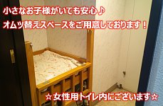小さなお子様連れでも安心なオムツ替えスペースもご用意しております。