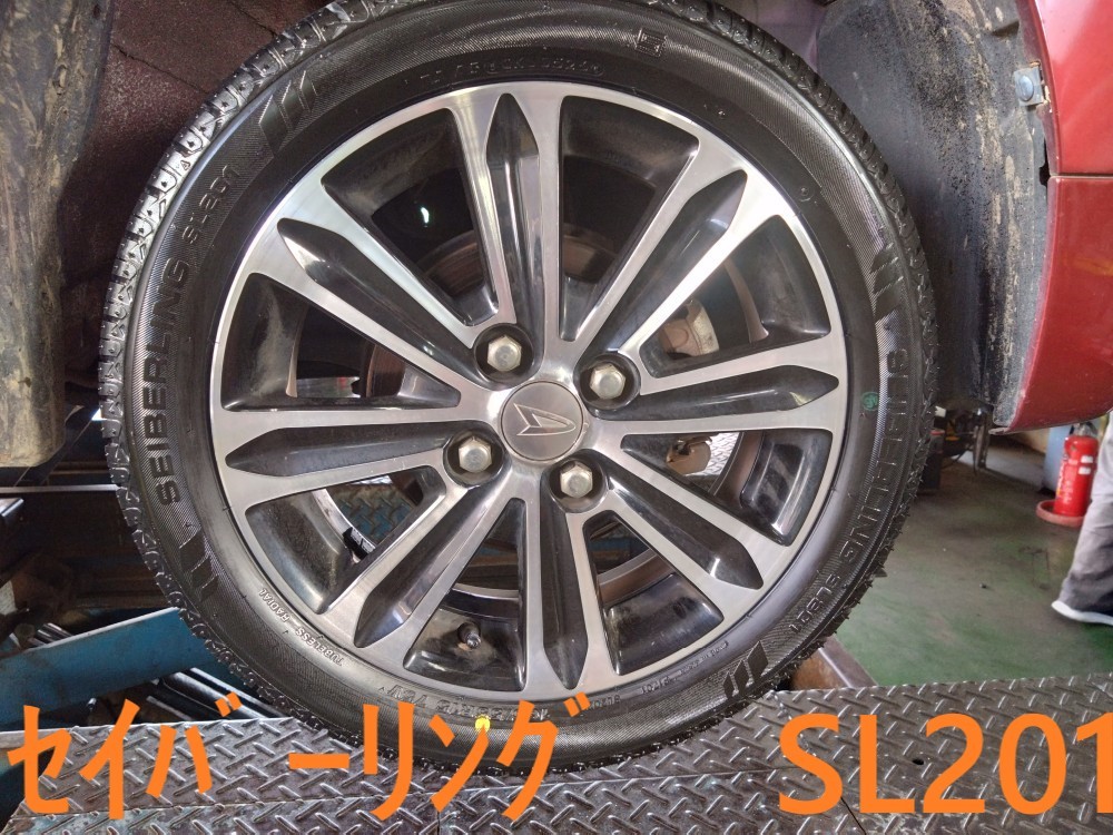 交換したタイヤはセイバーリング SL201。 ブリヂストン製のコストパフォーマンスに優れたタイヤです。