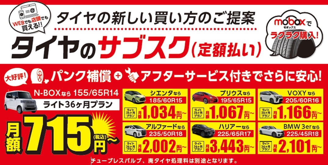 タイヤとメンテナンスの新しい買い方です。