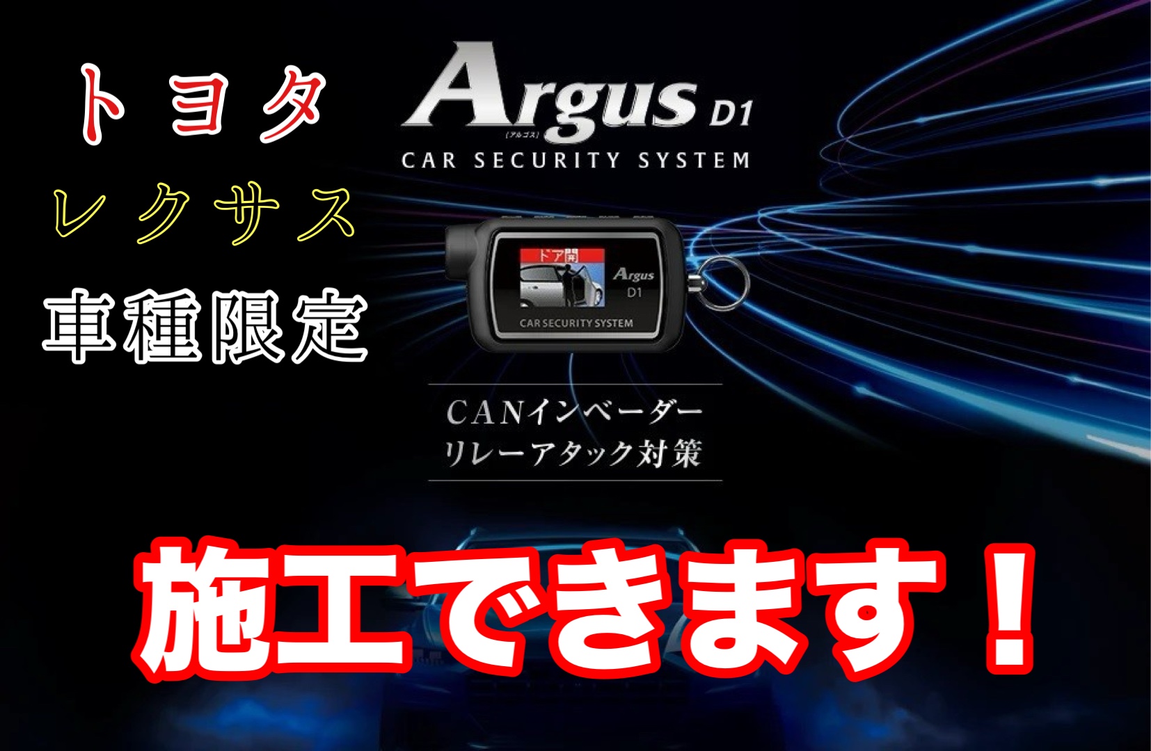 当店では「Argus D1」をお取り扱いしております。取り付け作業はもちろんのこと、商品の詳細、取り付け可能車種などにつきましてもご相談をお待ちしております。
