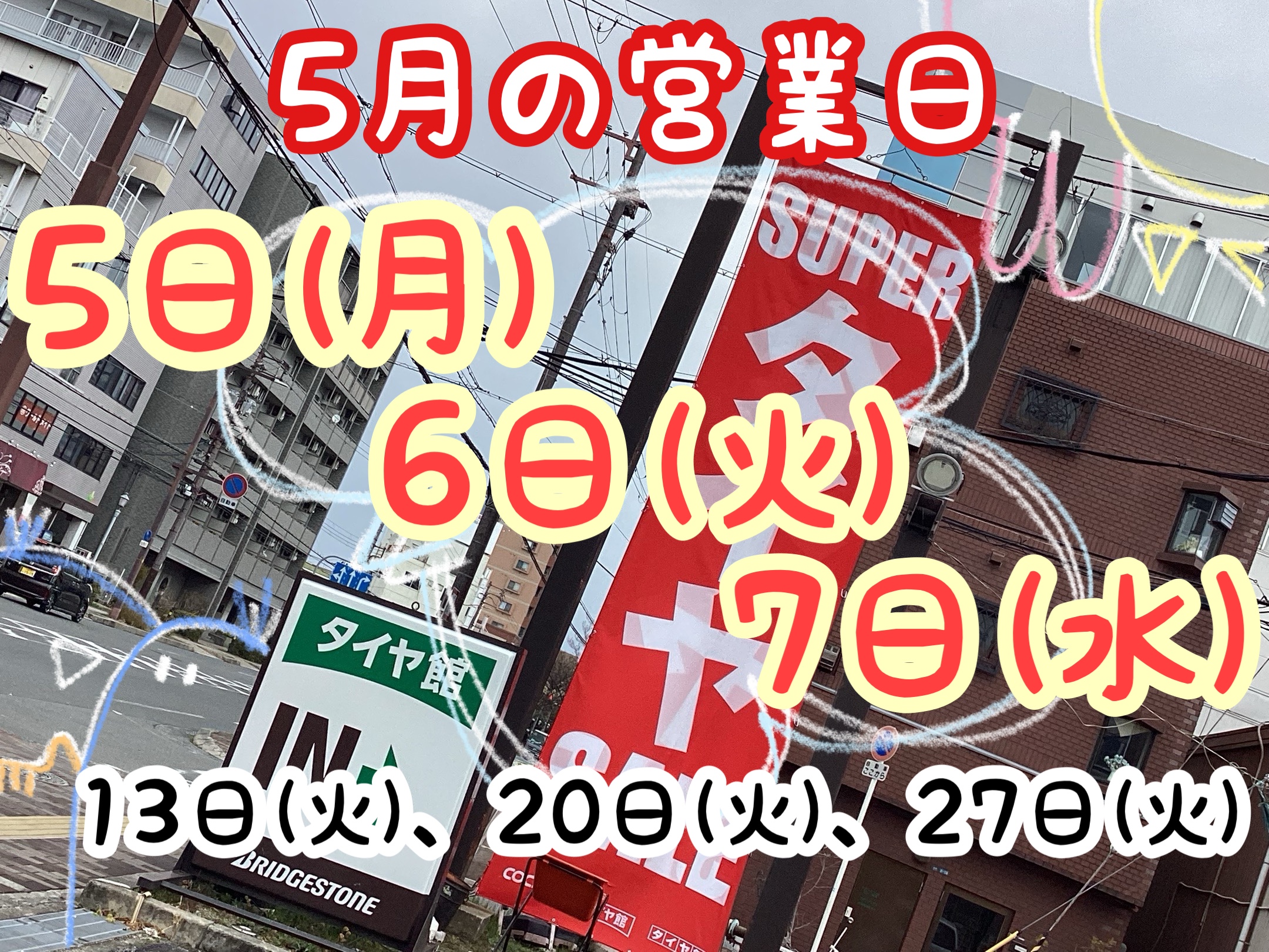 5/13(火) 5/20(火) 5/27(火)が定休日となります。